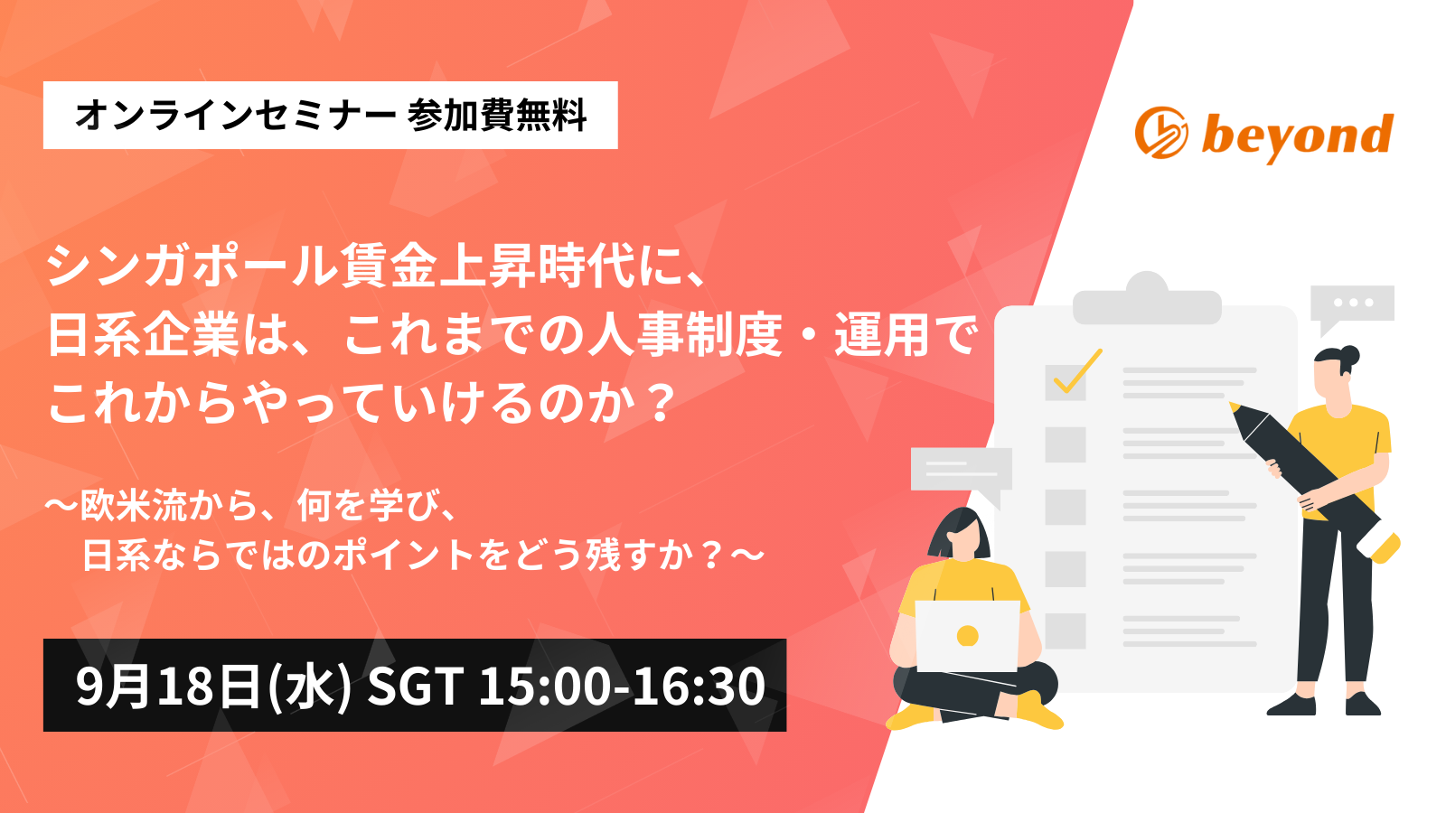 シンガポール拠点向け | 無料セミナー シンガポール賃金上昇時代に、 日系企業は、これまでの人事制度・運用でこれからやっていけるのか? 欧米流から、何を学び、日系ならではのポイントをどう残すか?