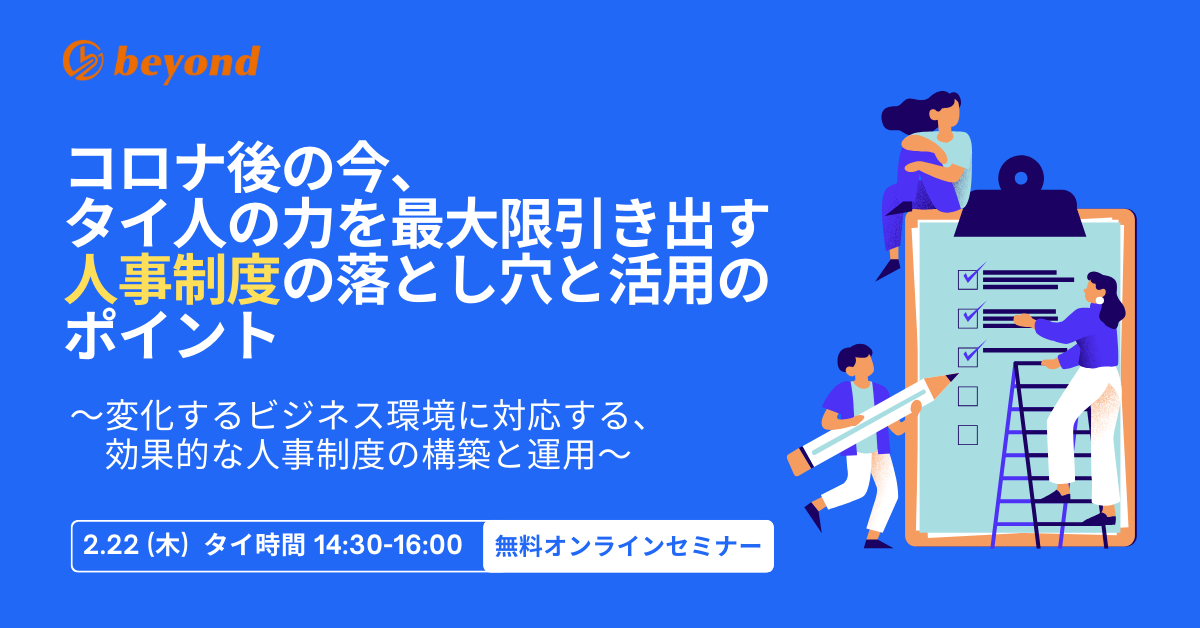 タイ拠点向け | 無料セミナー コロナ後の今、タイ人の力を最大限引き出す人事制度の落とし穴と活用のポイント 〜変化するビジネス環境に対応する、効果的な人事制度の構築と運用〜