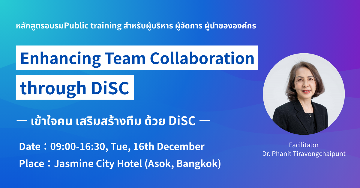 ไทย | สัมมนาที่มีค่าใช้จ่าย Public training สำหรับผู้จัดการชาวไทย【Enhancing Team Collaboration through DiSC】 เข้าใจคน เสริมสร้างทีม ด้วย DiSC